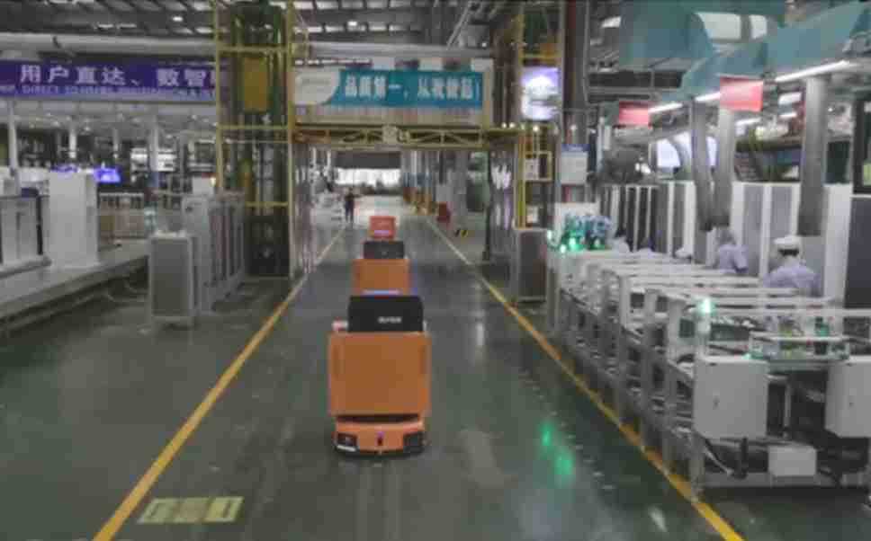为车载冰箱物流配送打造的智能解决方案,,包含产中物流通过潜伏举升AMR搬运至线边,,产后成品物流智能仓储,,,流程包含产中物流智能齐套入库,,,,线边安灯叫料AMR智能配送至线边,,,成品入库、、、、出库,,,,通过无人堆高车机器人,,,智能仓储管理替代人工作业管理,,,,实现更高存储、、、、更高效率、、、、更具柔性化的解决方案。。。